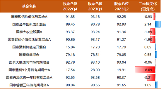 其中,7只权益类基金各自仓位水平小有增减,但都保持在90%以上的高仓位。