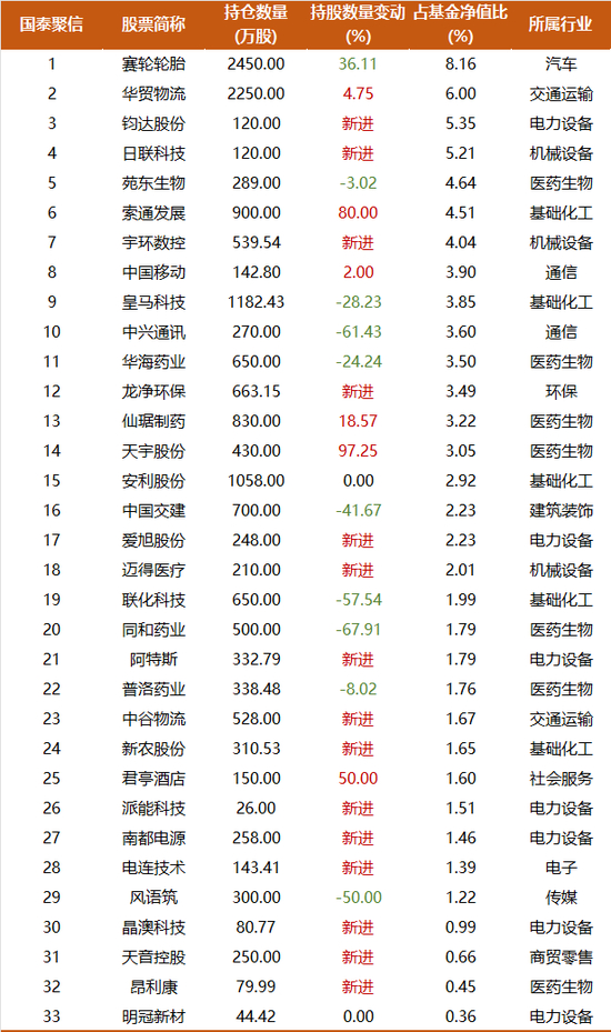 3、持仓在积极调整中,清仓2只,对原有持仓多有减持,新进8只重仓股。