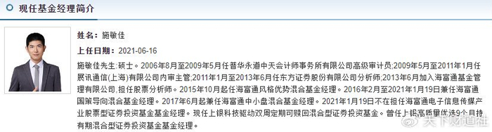 施敏佳此前曾在海富通基金担任基金经理,在此期间,其掌管的海富通国策导向混合基金,在2016年和2017年换手率均超过了1000%。