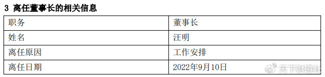 同年,公司董事长汪明因工作安排于2022年9月10日离任,武俊出任该公司新任董事长。