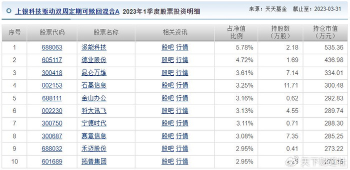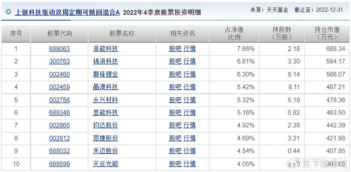 但其实,上银科技驱动2022年底的重仓股几乎都是新能源产业。
