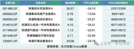 其代表产品为财通价值动量混合A,管理规模23.08亿元,今年以来收益率为-23.78%,同类排名2335/2339;财通成长优选混合A年内收益率-24.10%,同类排名2337/2339;