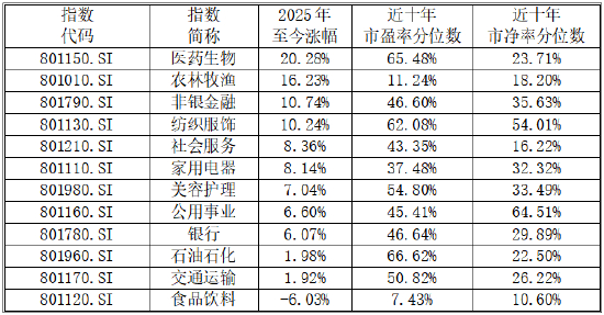 在结构性行情中,部分长期滞涨、估值处于历史低位的板块,或有望迎来价值重估。例如消费、医药、金融等行业,当前估值分位数相对较低或处于历史相对合理区域,且未来或受益于经济持续复苏,具备一定的均值回归潜力。