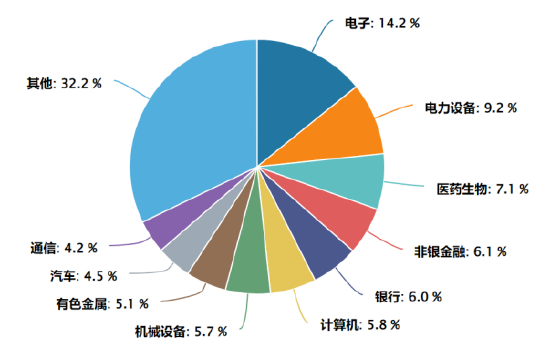 据Wind数据,十年前(2015年4月9日),万得全A指数成分行业中,非银金融、银行、房地产三大行业合计权重高达25.2%,是当时市场的支柱产业;十年后(2025年10月29日),电子与电力设备已取代传统行业,两者合计权重达23.4%,其占比已与十年前的金融地产板块相当。