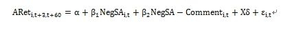 在模型方面,作者提出了如下的回归模型研究报道和评论的负面率与股票超额收益之间的关系:
