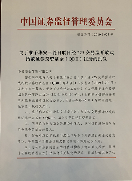 新浪财经讯 近日,全市场首批投资日本股票市场的ETF –华安三菱日联日经225交易型开放式指数证券投资基金 (QDII)(以下简称“华安日经225ETF”)正式获得证监会批复。