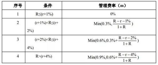 对照管理费率计提标准来看,可以很好地get到浮动费率的内涵:费率采用四挡阶梯式设计,基金回报率低于等于设定值不收管理费,真正的做到“瓜不甜不要钱”。