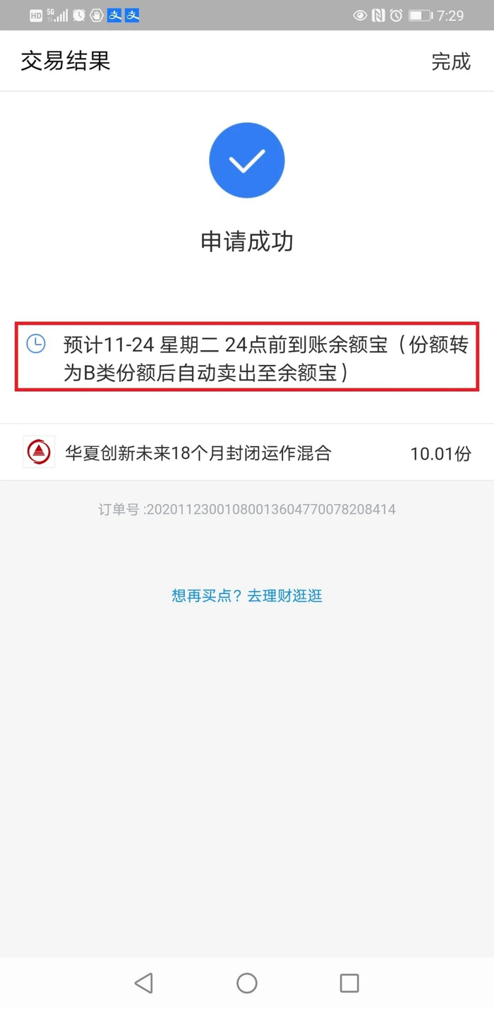 申请退出成功之后,系统提示份额转为B类份额后自动卖出至余额宝。