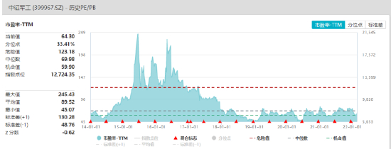 中证军工估值情况,数据来自于WIND