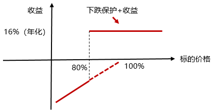 我们以前面的产品为例,中证500指数只要没有跌到80%,这份保险就不生效,投资者不仅可以获得保险费(16%年化收益),也不用向证券公司理赔,即使指数下跌也不会发生本金亏损;当中证500指数跌破80%,且到期价格没有回升至100%时,投资者需要向证券公司进行理赔,理赔金额为中证500指数下跌的实际跌幅,这时投资者会发生本金亏损。