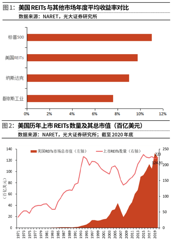 据NAREIT统计,1972-2019年,标普500指数平均年回报为12.1%,而FTSE Nareit All Equity REITs平均年回报为13.3%,REITs投资收益跑赢美股。西南证券表示,REITs的综合收益率包括两部分,资产升值收益率和股息收益率,其投资价值主要体现为以下三点: