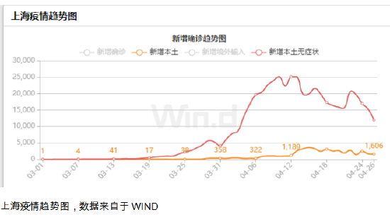 今日市场大幅反弹的另一大因素,或受上海疫情好转的影响。4月26日,上海新增本土新冠肺炎确诊病例1606例和无症状感染者11956例。从趋势图来看,目前每日新增人数出现持续性下滑,疫情拐点或已确认。上海集中隔离点医疗救治组组长最新表示,目前感染人数正在慢慢降下来,基本能满足新冠感染者的隔离观察需求,终于实现了“床等人”。另外据北京卫健委披露,26日北京新增31例本土确诊病例和3例无症状感染者。
