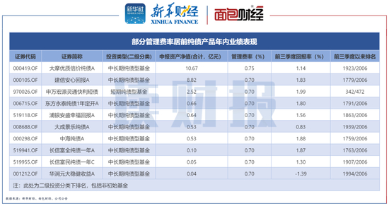 值得关注的是,费率在0.7%及以上的纯债产品中,超半数基金2022年前三季度收益率低于2%,涉及机构包括摩根士丹利华鑫基金、东方基金等。