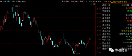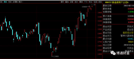 我们以融通健康产业为例子,10月底以来,净值从最低2.5950涨到最高3.5600,涨幅为37.1%。