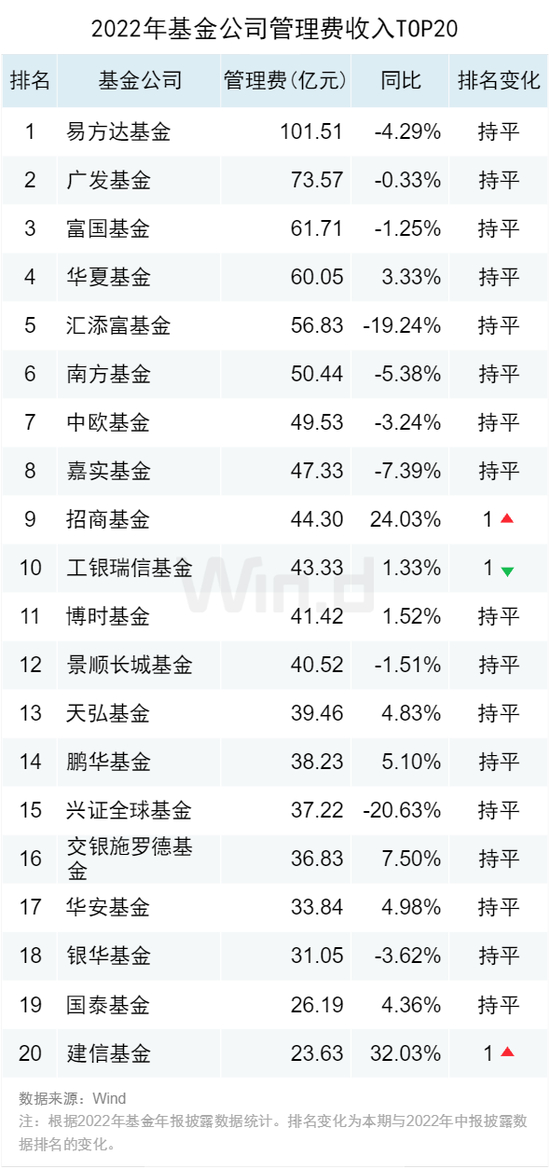 2022年公募基金年报大数据解读:易方达收管理费101亿降4%,广发基金73亿元降0.33%,汇添富降19%,兴全降20%