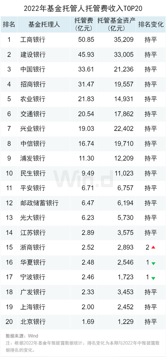 基金托管人托管费收入TOP20