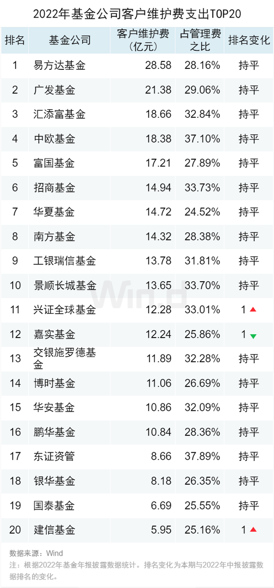 2022年基金公司客户维护费支出TOP20