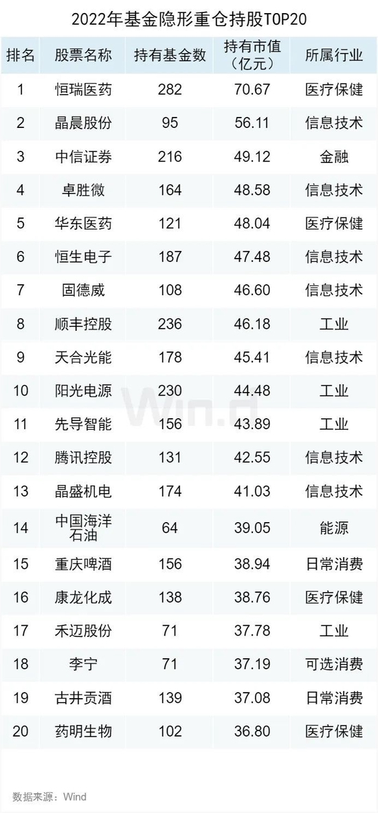 基金隐形重仓股TOP20