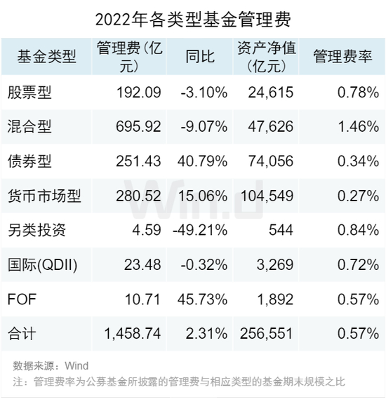 公募基金管理费是市场关注的焦点,根据2022年年报数据统计,公募基金管理人从基金资产中计提的管理费达1458.74亿元,相比2021年增长了2.31%。