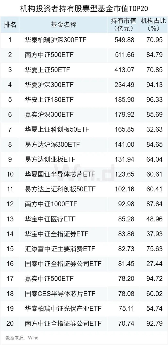 机构投资者持有股票型基金市值TOP20