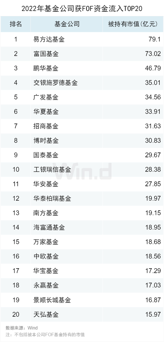 基金公司获FOF资金流入TOP20