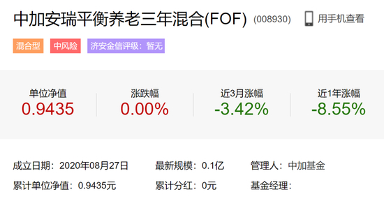 此外,近期又有一只养老目标基金清盘了,这只基金是中加安瑞平衡养老目标三年持有期混合。