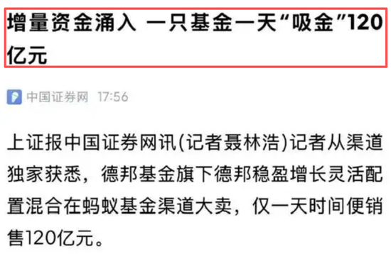 最近,德邦基金旗下的德邦稳盈增长基金火了,单日狂吸120亿资金。