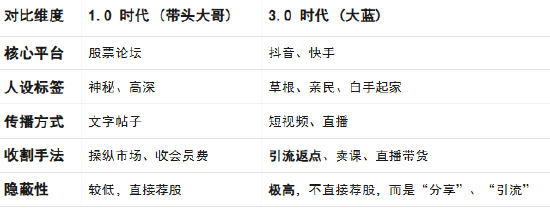 “大蓝”的倒下,在中文互联网上激起了一阵涟漪,但远未到掀起巨浪的程度。因为人们早已见怪不怪。从论坛时代的“带头大哥”,到微博时代的“股市黑嘴”,再到如今短视频平台的“流量股神”,荐股江湖的剧本换了无数个版本,演员换了一茬又一茬,但其收割“韭菜”的核心逻辑,二十年来,从未改变。