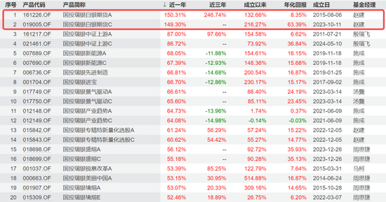 从产品收益率来看,国投瑞银有2款基金的近一年收益率超过100%,恰巧正是近期被热议的白银期货产品。