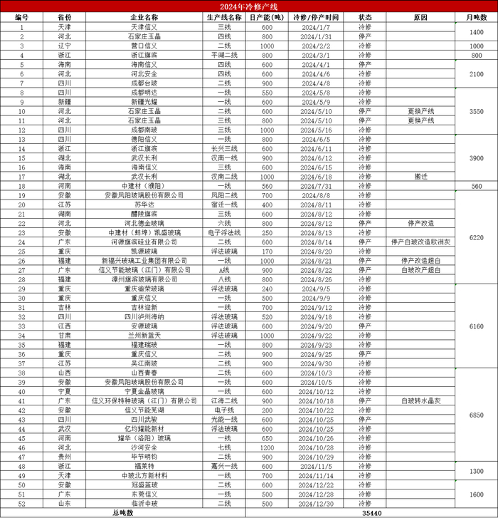 截至2025年6月5日,全国浮法玻璃日产量为15.68万吨,比29日-0.6%。全国浮法玻璃周产量109.79万吨,环比-0.56%,同比-8.64%。截至2025年6月5日,国内玻璃生产线在剔除僵尸产线后共计296条,其中在产224条,冷修停产72条。