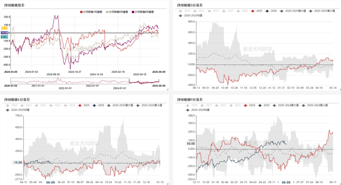 基差:中性 本周沙河地区玻璃09基差呈现走强趋势。截至2025年6月5日,沙河FG09基差为86,较2025年5月23日变动+2(环比+146.74%);沙河FG01基差为25,较2025年5月23日变动+1(环比+112.44%)。