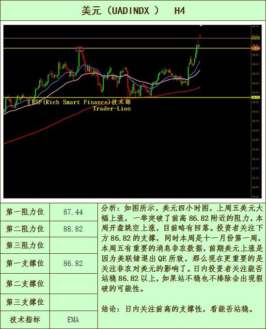 吴量:RSF贵金属及外汇技术分析报告(2014.11.03周评) 汇金网 2014.11.0313:24 关注 汇金网11月3日讯——黄金(XAUUSD): 白银(XAGUSD): 欧美(EURUSD): 镑美(GBPUSD): 美日(USDJPY): 美元指数: 编辑: