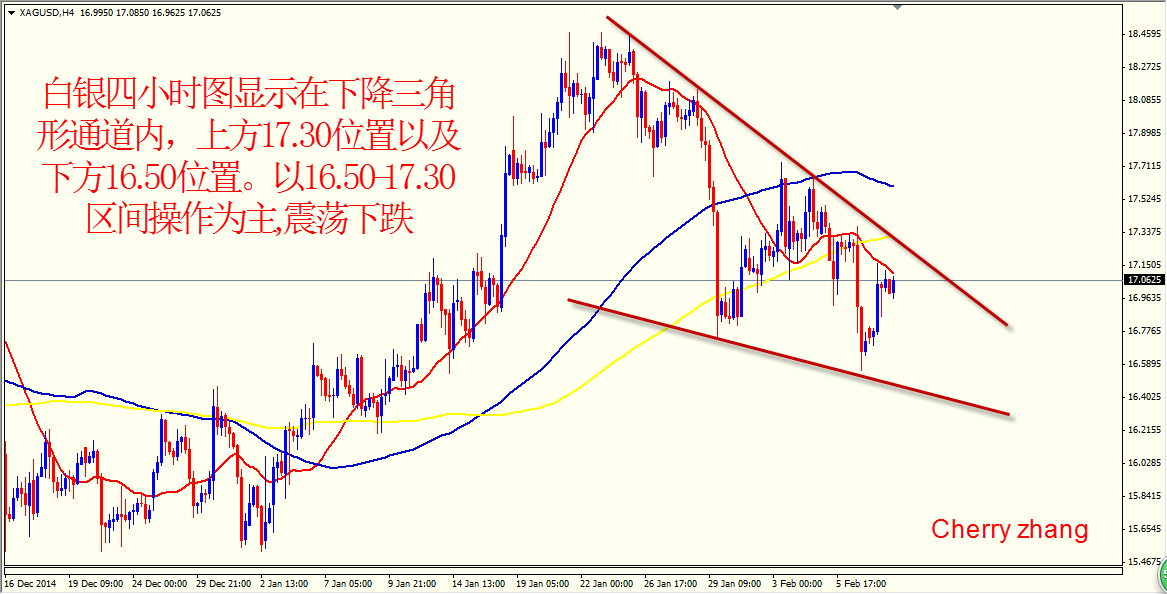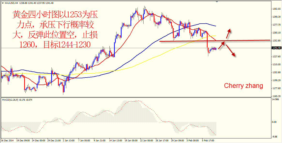 现货黄金从K线图上看,昨日日图收了一根上下影线均很短,实体部分较小阳线。亚市早盘金价进一步远离上周五刷新的低点1228.32美元,尾盘价格运行至1240水平盘整。虽然因市场预期本次公布的LMCI将会高于前值,金价于欧市盘中触及日高后承压下行,但最终数据却意外下滑,金价重回1240水平横盘,目前依然在1240附近小幅盘整。现货黄金昨日最高触及1243.60美元/盎司,最低下探1233.55美元/盎司。从日图收线可以看出,昨日多空双方没什么实质性较量,整体波幅较为有限,主要是周五晚间大幅下跌后的一个短暂性调整过程。从均线上看,日图上显示金价目前受压与21日均线,但还是受到144日1233均线附近的支撑。四小时图上看,金价受到3条均线施压,上方压力在1252位置。从MACD上看,目前四小时图上MACD依然位于零轴下方指标有超买,需修复。日图上看指标也位于零轴附近。非农数据已经助黄金跌破1255关键支撑位,下方以1255为上端的W型走势遭到破坏,个人认为只要不上破1255这个位置,依然反弹去做空黄金,上方压力1244,1255。假如真正突破以1307-1297-1285短期的下降趋势线,黄金多头才能进攻,不然还是会受到压制。关注希腊风险时间影响。