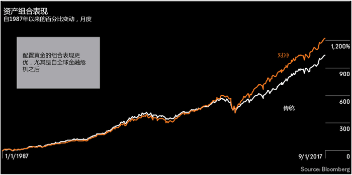 结果表明,纳入黄金的资产组合的优于没有纳入黄金的组合,平均每年收益高出约55基点,尽管代价为更高的波动性。