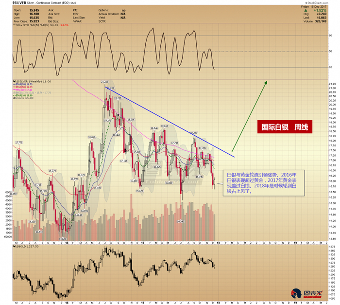 白银与黄金轮流引领涨势。2016年前者表现超过后者,2017年后者表现盖过前者。2018年是时候轮到白银占上风了。