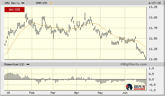 从iShares Gold Trust(IAU)走势图上也可以看出,IAU仍然面临着抛售压力,目前还未触底。