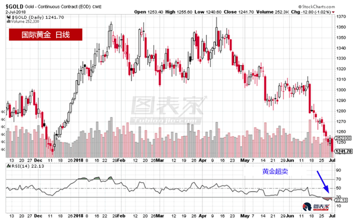 近期黄金一度大幅走低,其日线RSI指标处于2016年年末以来最超卖的水平。