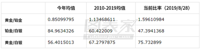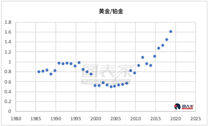 另一个值得关注的是,黄金与铂金的比例约为平均水平的两倍。