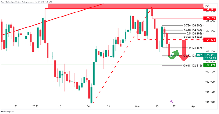 FXStreet分析师Ross Burland提到,考虑到市场处于先前看涨趋势的背面,可以得出看跌偏见。修正可能在此处进行,38.2%的斐波那契上行至104.20附近,之前的支撑可能是目标。