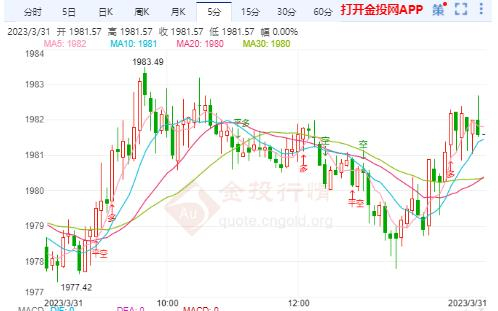 周五(3月31日)亚市盘中,现货黄金延续升势,金价现报1982.10美元/盎司左右。周四美国经济数据逊于预期。美国去年第四季度实际国内生产总值(GDP)年化增长率为2.6%,略低于此前估计的2.7%。此外,截至3月24日当周初请失业金人数人数增加至19.8万,超过预期的19.6万。比预期疲软的美国数据增加了美元的下行压力。黄金价格获得上行动力,多头的目标是挑战2000美元/盎司大关。