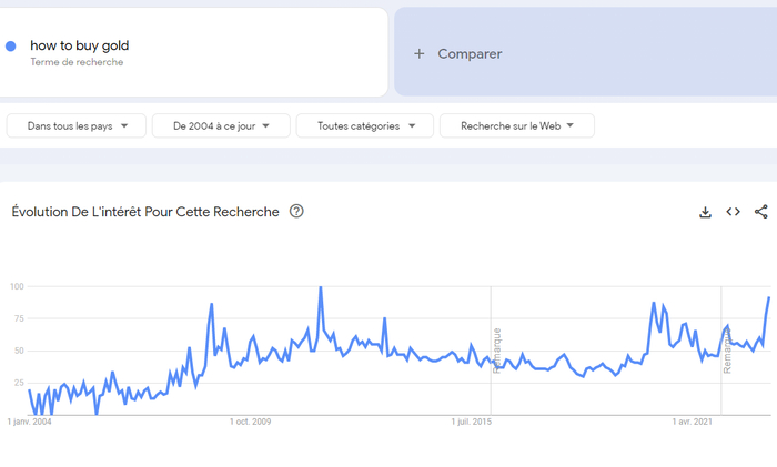 这种对实物黄金的热潮现在正在蔓延到零售层面,全球对“如何购买黄金”一词的搜索量达到和2008年、2020年相当的峰值。