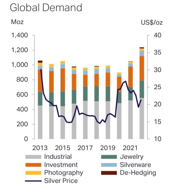 白银价格对供需基本面没有反应,它是期货市场投机性押注的结果,期货市场主要看跌。大多数投资者出于特定原因“做空”白银:一些基金利用这些看跌头寸押注即将到来的经济衰退,一些银行则为了保护他们的大量空头头寸。纸面白银市场与实物市场的脱节如此之大,以至于需要越来越多的杠杆持仓来控制现货价格。