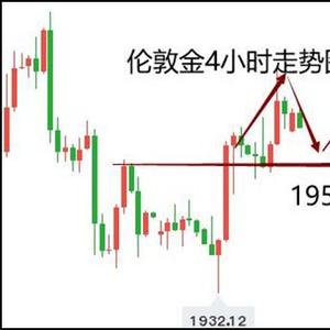 但4小时级别上,昨日金价下探回升,刚好确认了此前高点1955-56被突破后形成的支撑,有利于多头。
