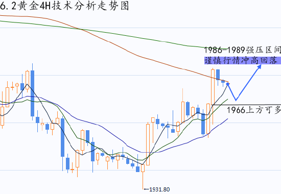 黄金从日线上看,金价延续从100日移动均线和七个月上行支撑线(目前约为1940)的反弹走势,一度接近1992附近的50日移动均线障碍。不仅从关键支撑线和移动均线上掉头,而且金价明显突破从5月初开始延伸的先前重要阻力线,也让多头充满希望。与此同时,14日相对强弱指数(RSI)走高,MACD指标的看跌倾向消退,也为金价的上行预期增加力量。整体来看,非农前黄金操作上建议回调做多为主。
