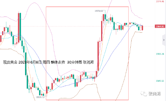 展望今日周五(6月9日):国际黄金开盘反弹动力有所减缓,暂仍受阻于中轨线附近压力,另外,美元指数及美债收益率相对隔夜跌幅有所止跌短期走强,也对其产生压力;