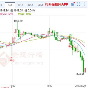 周二(6月20日)本交易日黄金期货金开于1950.19美元/盎司,最高上探至1953.79美元/盎司,最低触及1944.91美元/盎司,截至发稿暂报1947.17美元/盎司,跌幅0.15%。