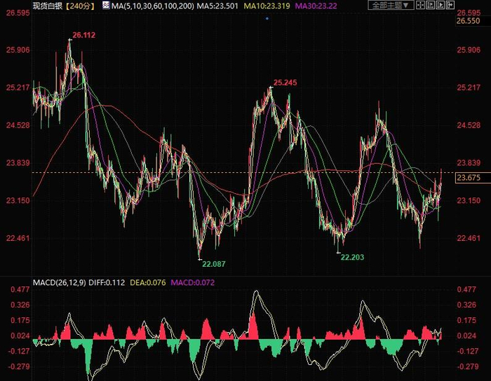 我们需要密切关注银价在这个关键水平上的表现。如果银价能够突破23.70美元/盎司,将进一步推动价格升至24.60美元/盎司的区间。