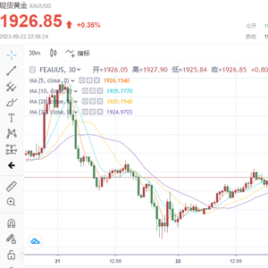 截至发稿,现货黄金上涨0.34%,至1,926.85美元/盎司。