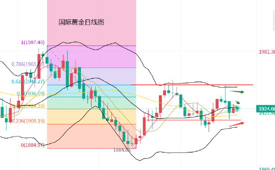 从之后的走势来看,美盘开盘前,黄金处于1920到1930美元区间震荡,美盘开盘后,黄金试探1927美元遇阻回落,最低跌至1915美元企稳,低位横盘至收盘。周二开盘,黄金承压下探,跌至1909美元企稳反弹,目前暂时交投于1914美元附近。黄金承压震荡,这基本符合我们的预期。