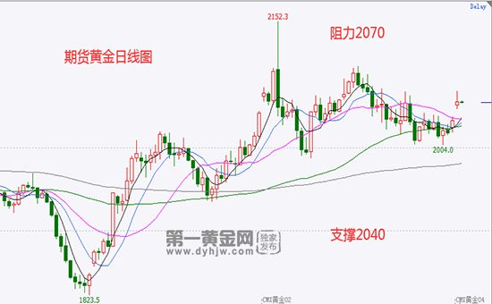 从日线图上看,黄金TD受到了10日、20日均线的支撑,这预示着黄金TD将要上涨。